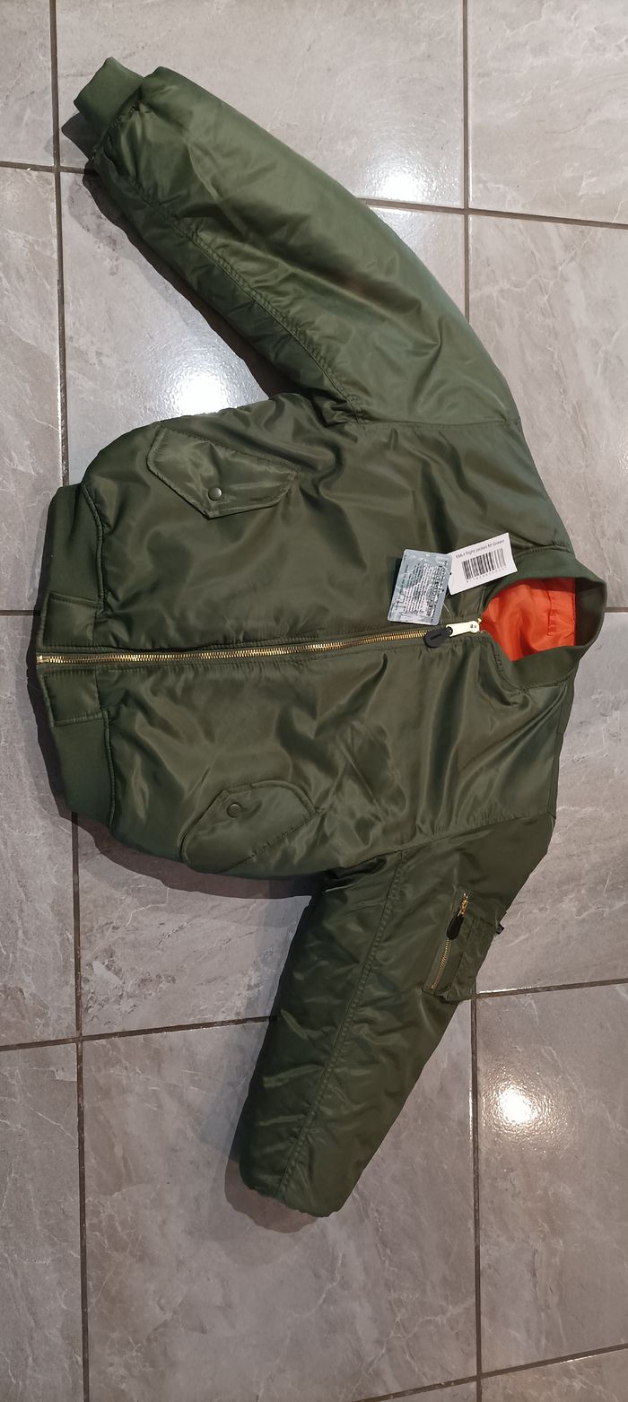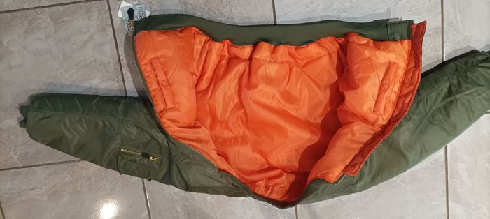 Je vends ce manteau aviateur homme de couleur verte et orange - Type de produit : Manteau - Univers : Homme - Couleur : Vert et orange - Taille : M - État : Neuf avec étiquette