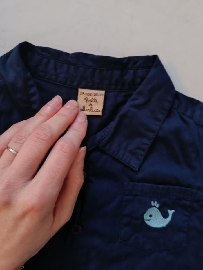 Neuve, passée une fois en machine mais jamais portée #chemise #garçon #bleumarine #36mois #boiteamalices