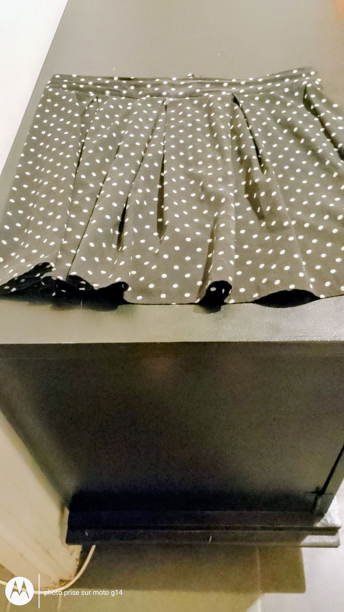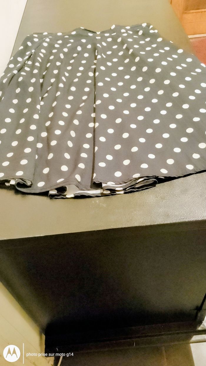 1 jupe longues à pois blancs sur noir, avec 2 poches 1 jupe courte à pois blancs sur noir 1 jupe courte à motifs blancs sur noir, elastifiée à la taille
