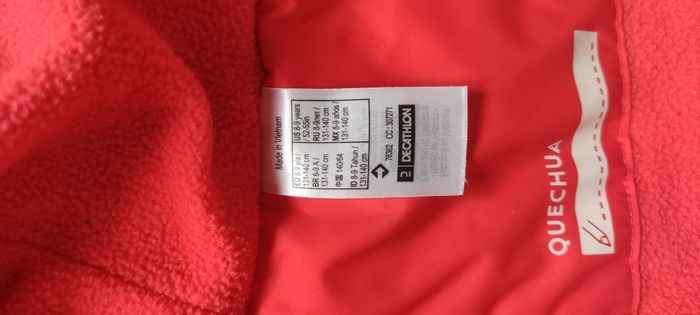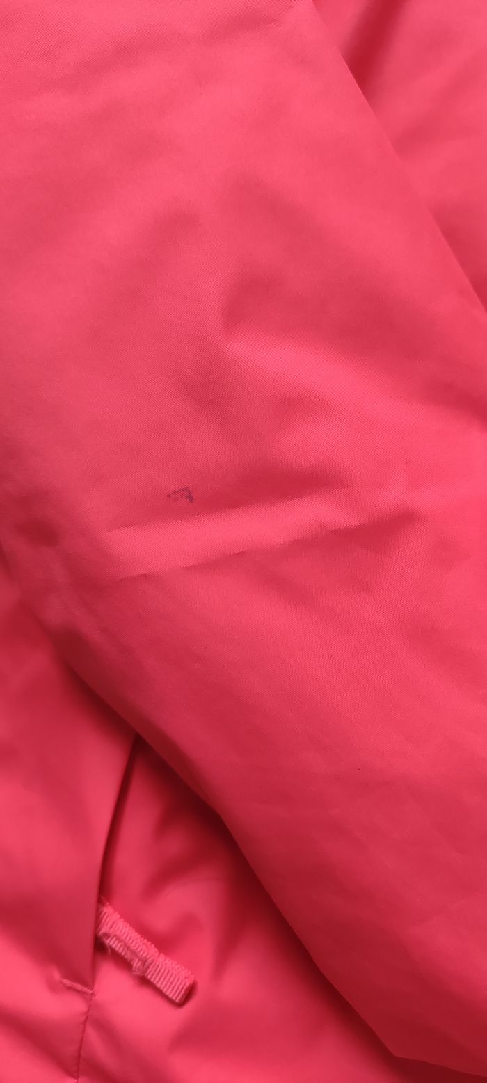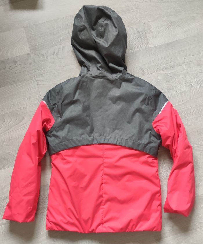 Veste imperméable doublé en parfait état. Il y a une petite tâche d'encre sur une manche visible sur une photo. Manche avec des poignets Couleur gris et rose Longueur milieu devant : 56cm Largeur poitrine : 88cm Taille : 8-9ans 100% polyester