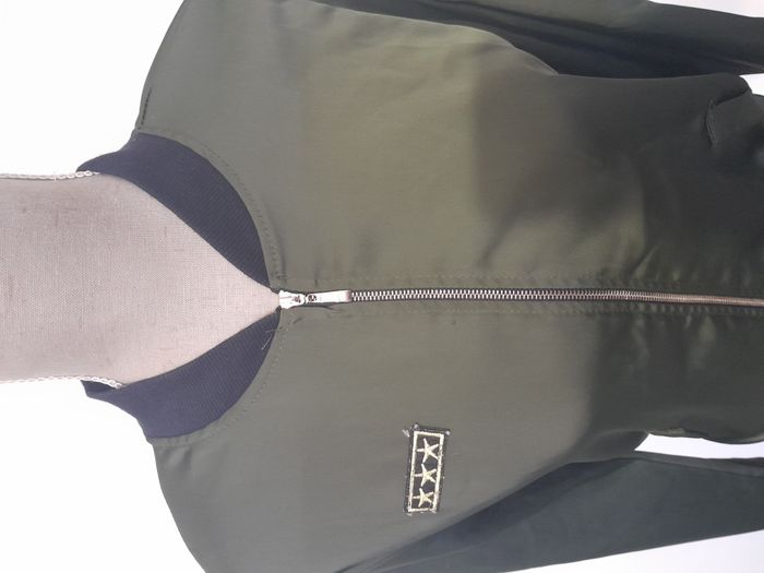 Veste, façon bomber, 2 fausse poche, écusson sur le bras et devant, attache fermeture éclair devant Longueur : 55cm Aiss / Aiss : 53cm Matière : 93 % Polyester, 7 % Elasthanne Marque : New Collection