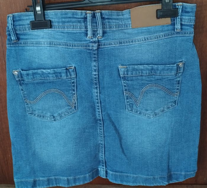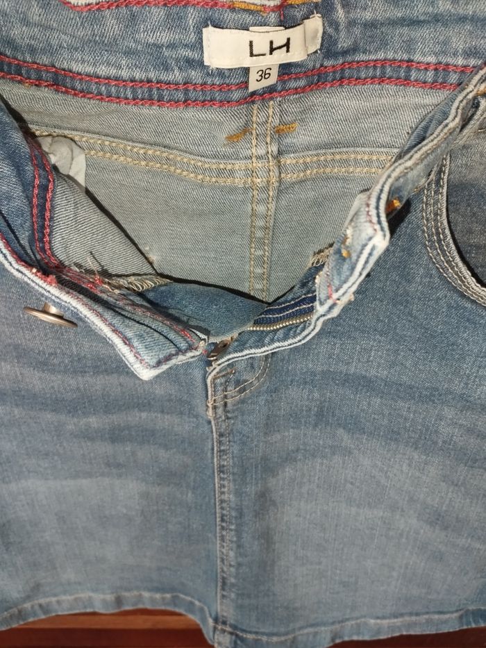 💙 Jupe 💙 Matière : jeans, coton, élasthanne et synthétique 💙 Couleur : bleu 💙 Poches : 2 sur l'avant et 2 poches à l'arrière 💙 Fermeture : éclair (zippée) et boutonnière 💙 Taille : 36 - S 💙 Marque : LH - La Halle aux vêtements