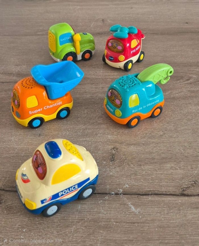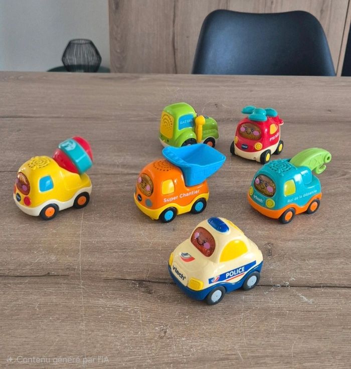 Lot de 6 Tut Tut Bolides sonores et lumineux 2 ont les piles qui fonctionnent, les autres sont à changer Vtech Bon état