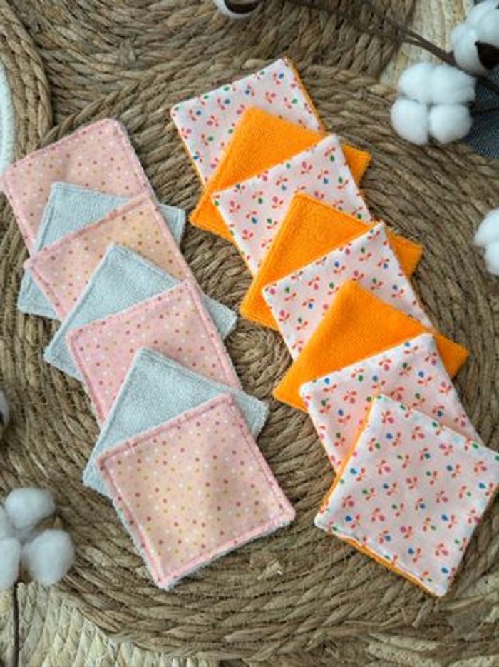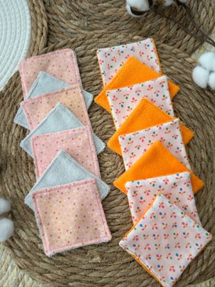 Lingettes lavables en éponge micro fibre lot de 14 Taille 9x9 cm lavable à 30° Création Fait main Ateliersdisa