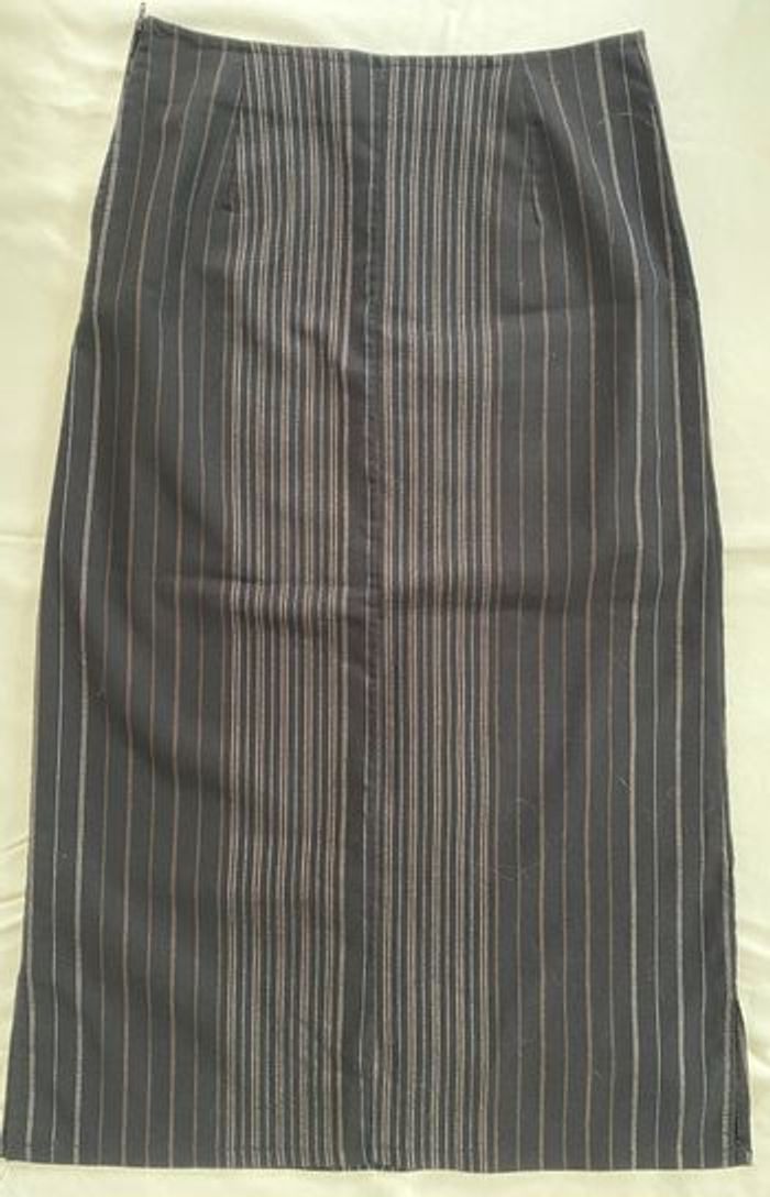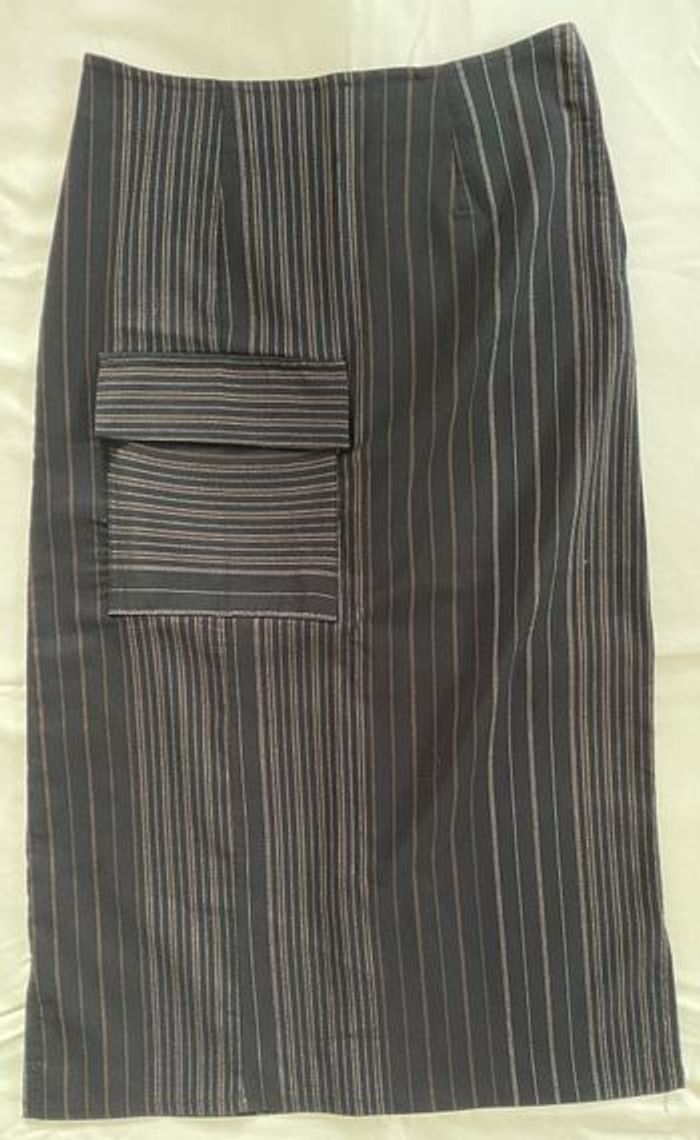 Jupe droite noir à fines rayures Fermeture éclair sur le côté gauche Taille 42/44 Longueur 86 Grande poche devant à droite