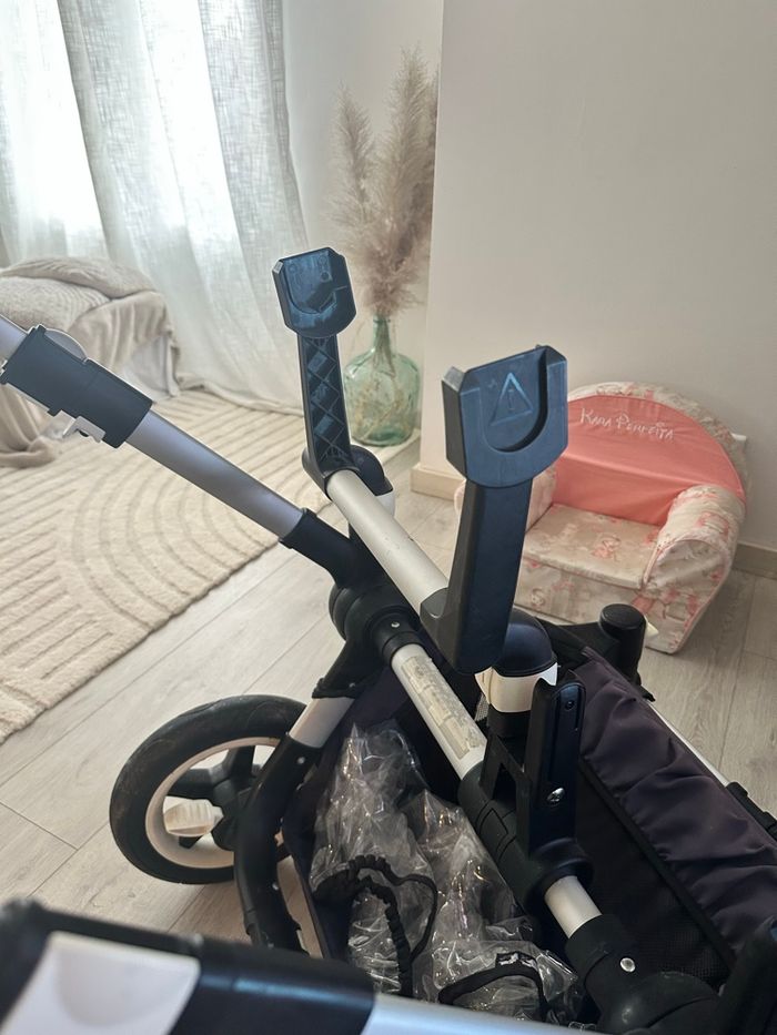 Je me sépare à contre cœur de ma poussette Bugaboo, que j’aimais énormément et dont j’ai toujours pris le plus grand soin. Elle est en très bon état, parfaitement entretenue vous pouvez l’utiliser en double ou solo avec son petit panier Comprend : • 2 assises • 2 nacelles • 1 adaptateur pour cosi compatible avec plusieurs marques Adaptateur testé et compatible avec Cybex et Maxi-Cosi et d’autres Les roues sont gonflables et peuvent être regonflées au besoin avec un compresseur. Idéale pour jumeaux ou enfants d’âges rapprochés. Petites traces d’usure sur la poignée, très légères. N’hésitez pas à me contacter pour plus d’informations ou de photos Personne non sérieuse s’abstenir