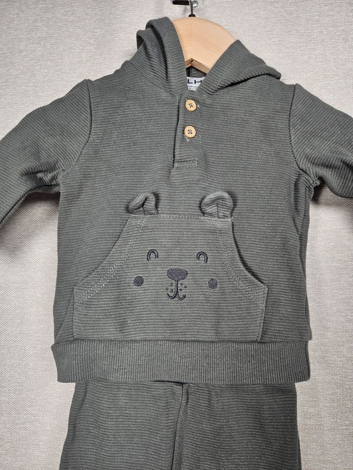 Hello ! 👋 Je te propose cette pièce de la marque La Halle, une super trouvaille pour le dressing de bébé 👶 Cet ensemble texturé vert kaki avec sa petite tête d'ours brodée sur la poche kangourou est absolument craquant pour les journées cocooning. ​Informations utiles: ​👕 Article : Ensemble sweat à capuche et pantalon en maille gaufrée ​📏 Taille : 3 mois (62 cm) ​🌈 Couleur : Vert kaki ​🧵 Matière : 100% Coton ​✨ État : ⭐⭐⭐⭐ ​Les petits + : 🏡 Logement non fumeur et sans animaux. 📦 Envoi rapide et soigné. ​N'hésite pas si tu as la moindre question ou si tu veux d'autres photos ! Je suis là. 😉 ​#kaki #lahalle #3mois #bebe #mignon #ensemble #coton #automne #tresbonetat #vêtementsbébé