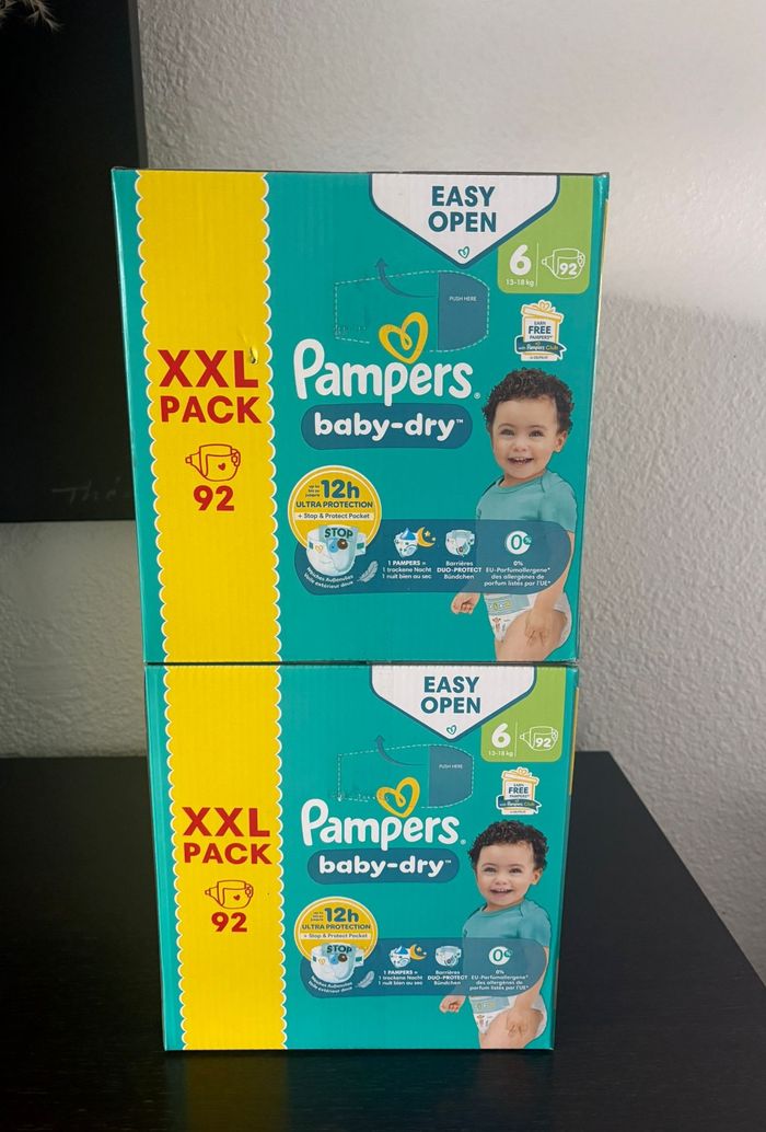 2 packs XXL 92 (soit 184) Pampers Baby Dry Taille 6 ⚠️⚠️⚠️Si vous sélectionnez Mondial Relay ne prenez pas un Locker, ça ne rentre pas. 🔔 🔔 🔔RAPPEL : Le délai pour retirer les colis a été raccourci à 5-7 jours selon les transporteurs (dimanches et jours fériés inclus). Merci de vérifier que vous serez en mesure de retirer votre colis à temps avant de commander.🙏🙏🙏 #pampers #couches #t1 #t2 #t3 #t4 #t4+ #t5 #t5+ #t6 #t7 #taille1 #taille2 #taille3 #taille4 #taille5 #taille6 #taille7 #taille8 #premium #protection #baby #pants #bébé #paquet #pack #harmonie #dry #huggies #sec #nuit #absorbant #extra #absorption