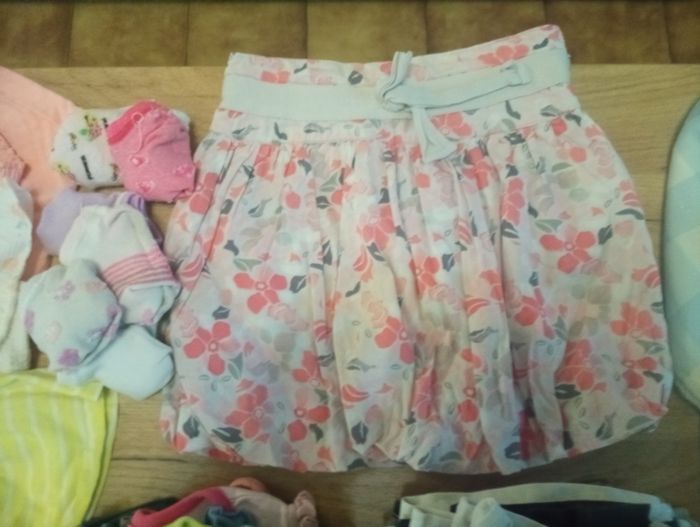 Lot vêtements été fille 5 ans Très bon état 1 chemisier 1 short 1 jupe 3 combishorts Lot soquettes 12 Tee shirts 8 débardeurs