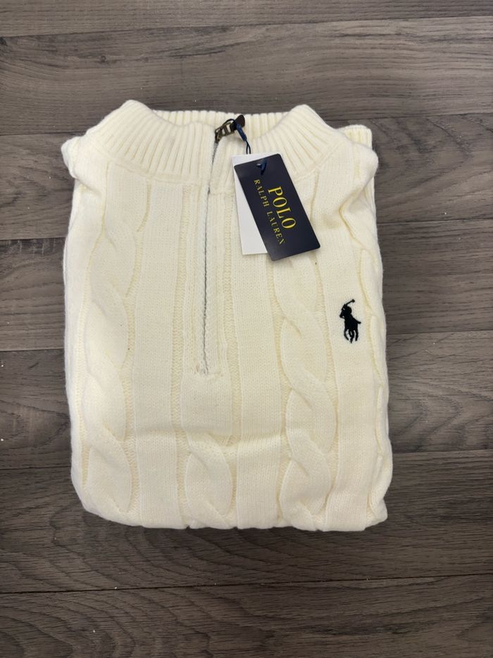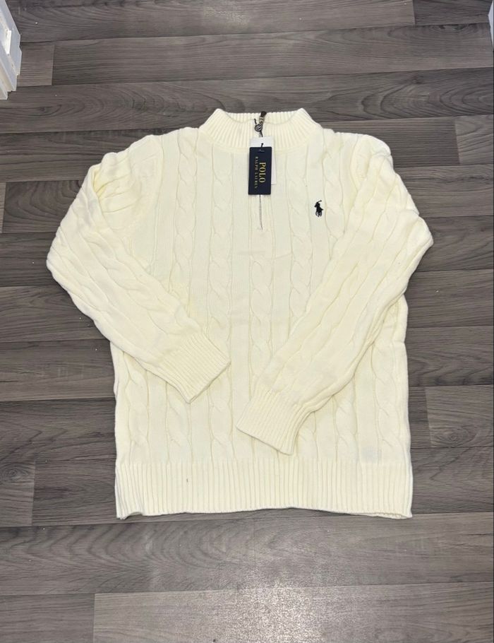 Vends pull torsadée à zip Ralph Lauren, blanc, crème de taille XL, Taille plus petit donc je dirais taille L