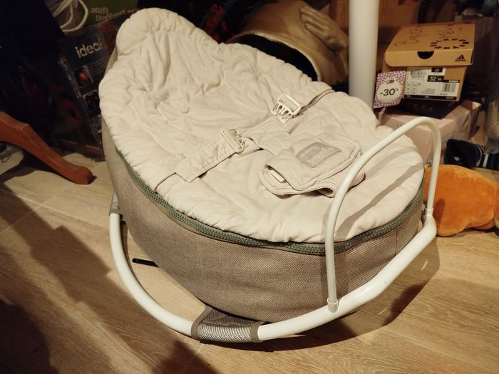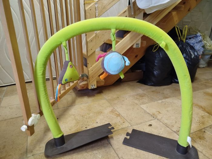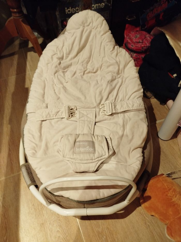 A vendre doomoo en totalité tissu marron et beige possibilité de le nettoyer intégralement a la machine ou séparément. Le dessous du doomoo qui sert de support de maintien est en polystyrène (qui est cassé mais qui peut être remplacé trouvable dans magasin de bricolage) mais que l'on peut enlever pour le nettoyer. Manque un jouet sur l'arche de jeu qui et, aussi démontable. Une balancelle pour mettre le doomoo dessus qui est, elle aussi démontable pour être nettoyer (filet).