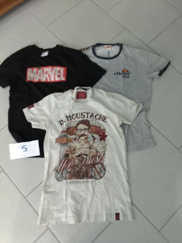 1tee shirt noir manches marvel 1tee shirt bleu gris ellesse 1tee shirt bizzbee beige dessin monsieur à moustache Taille S 5euros