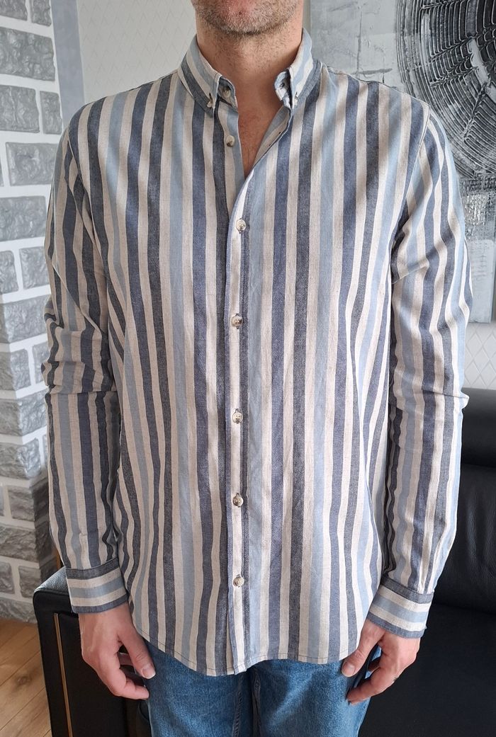 chemise BIZZBEE rayée grise et bleue, taille L, coupe regular, neuve jamais portée
