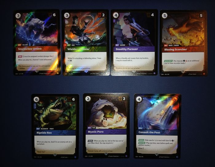 Lot de 7 cartes Promos COMMON FOIL en EXCELLENT ÉTAT sorti de booster Nexus Night (OGNX) 1ère édition ⚠️ 2 cartes avec léger défaut Mise sous sleeve et soin sur l'emballage pour une expédition sûre et votre colis en sécurité Jeux de carte de Riot inspiré de l'univers de League of Legends et de Legends of Runeterra