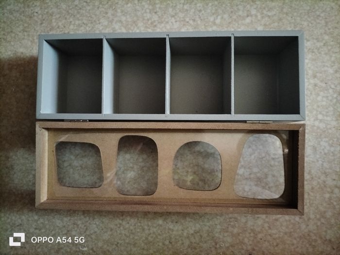 jolie boîte de rangement en bois pour sachet de thé - Type de produit : Boîte de rangement - Matière : Bois , 4 compartiments - Couleur : Marron - Style : Scandinave - Très bon état - Dimensions : 26x9 cm 4€