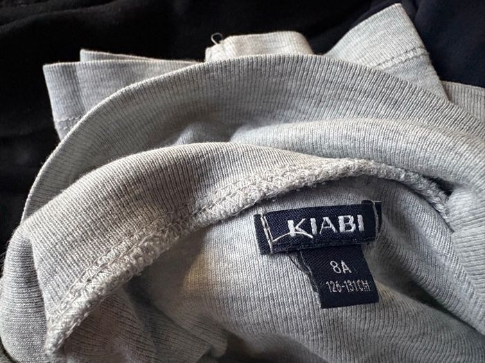 8 ans-128 cm Mais attention Kiabi fait 128-131 cm 2 Sous pulls Okaïdi marine et noir 100% coton 2 sous-pull Kiabi gris et noir Le sous-pull noir n’a plus d’étiquettes, je l’ai superposé au gris qui est en 8 ans, taille identique Repassés à l’envers les couleurs sont préservés Les effets de décoloration sur les photos sont dus à la lumière En très bon état