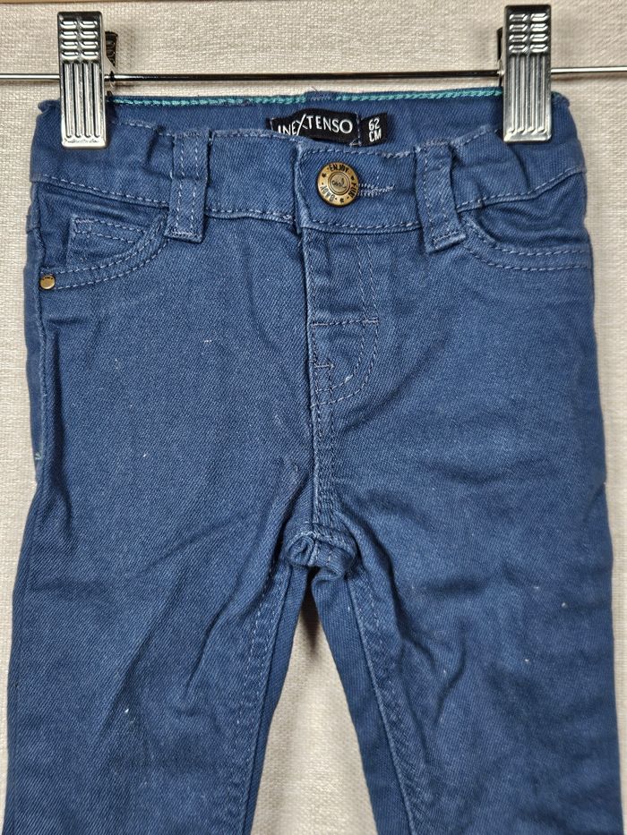 Hello ! 👋 Je te propose cette pièce de la marque Inextenso, une super trouvaille pour le dressing de bébé 👶 Un jean classique et indémodable avec de jolis détails de surpiqûres colorées et un patch arrière "Happy Baby". ​Informations utiles: ​👕 Article : Jean coupe droite ​📏 Taille : 62 cm ​🌈 Couleur : Bleu indigo ​🧵 Matière : matière non précisée ​🔍 À savoir : ajustable à la taille ​✨ État : ⭐⭐⭐⭐ ​Les petits + : 🏡 Logement non fumeur et sans animaux. 📦 Envoi rapide et soigné. ​N'hésite pas si tu as la moindre question ou si tu veux d'autres photos ! Je suis là. 😉 ​#bleu #inextenso #62cm #bebe #jean #modebebe #denim #basique #tresbonetat #videdressingbebe