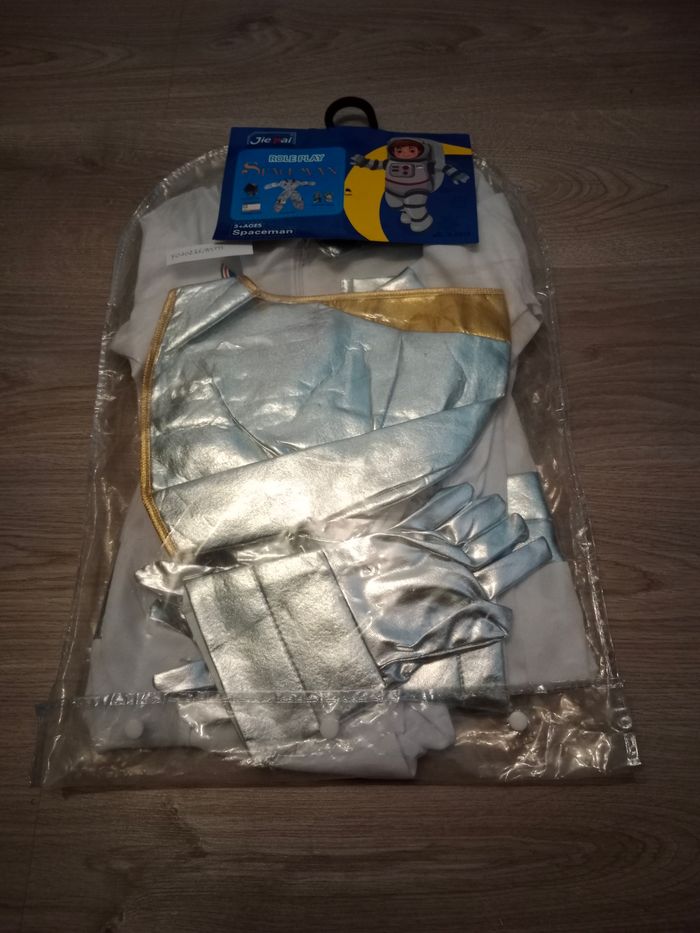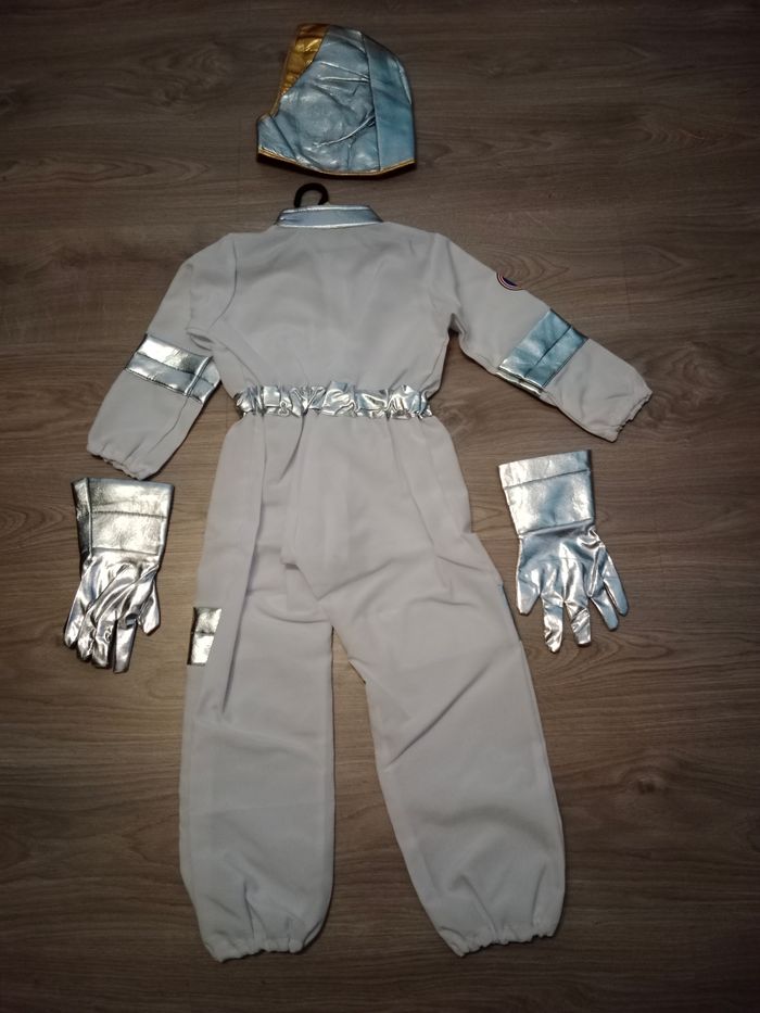 Costume d'astronaute Taille 5/7 ans Contient : une combinaison (95 cm) avec poche transparente sur la poitrine, un casque en tissu et une paire de gants