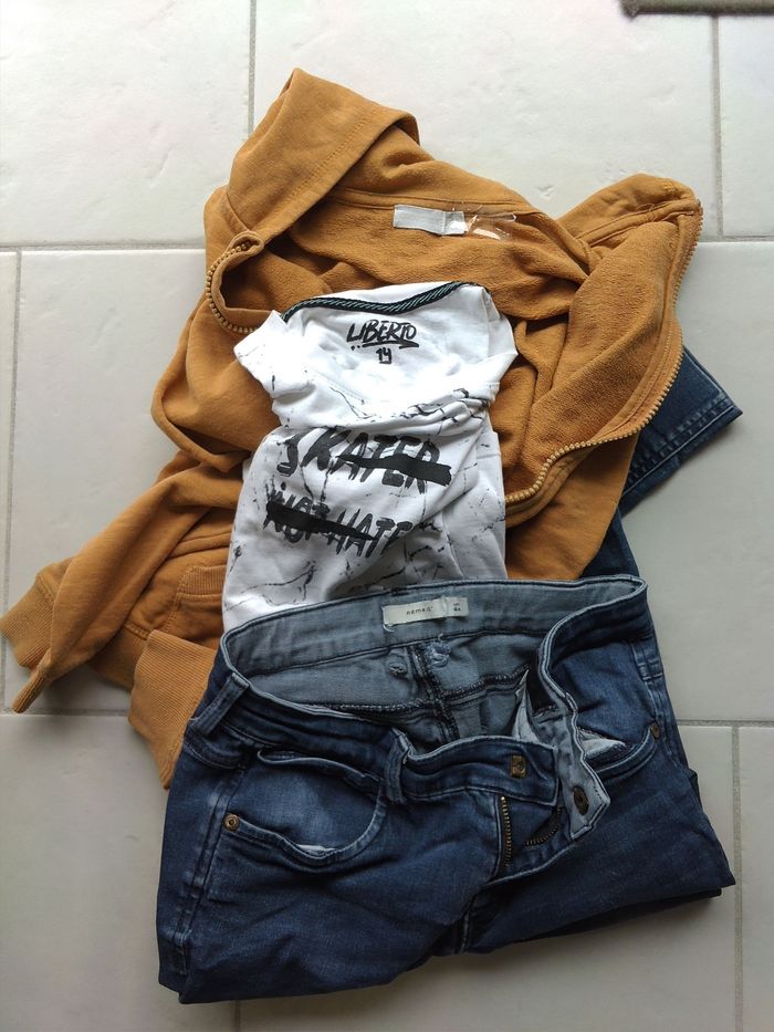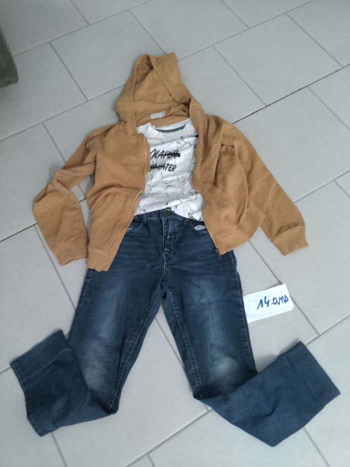 1jean nameit 1 gilet à capuche camel orchestra 1tee shirt blanc et noir liberto Taille 14ans