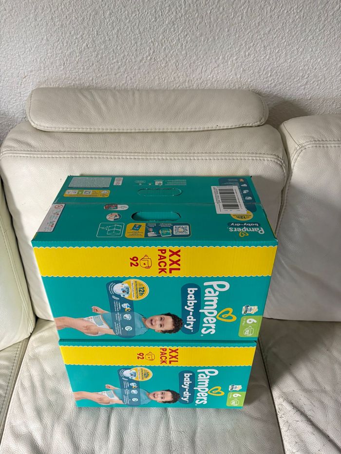 2 packs XXL 92 (soit 184) Pampers Baby Dry Taille 6 (13-18 kg) ⚠️⚠️⚠️Si vous sélectionnez Mondial Relay ne prenez pas un Locker, ça ne rentre pas. 🔔 🔔 🔔RAPPEL : Le délai pour retirer les colis a été raccourci à 5-7 jours selon les transporteurs (dimanches et jours fériés inclus). Merci de vérifier que vous serez en mesure de retirer votre colis à temps avant de commander.🙏🙏🙏 #pampers #couches #t1 #t2 #t3 #t4 #t4+ #t5 #t5+ #t6 #t7 #taille1 #taille2 #taille3 #taille4 #taille5 #taille6 #taille7 #taille8 #premium #protection #baby #pants #bébé #paquet #pack #harmonie #dry #huggies #sec #nuit #absorbant #extra #absorption