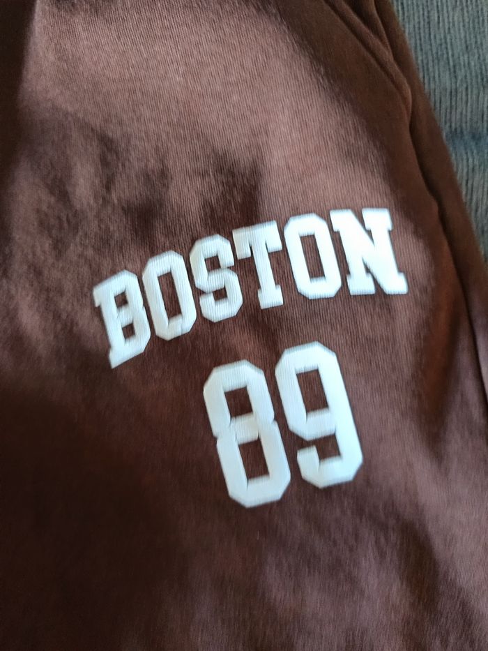 Bas de jogging marron avec motif "Boston 89" Kiabi XS (14ans) Très bon état juste étiquette de la taille coupée (voir photo) 62% coton, 38% polyester #joggingmarron #kiabifille #joggingxs