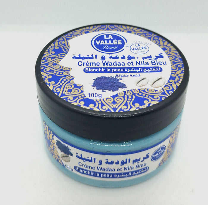 Crème Nila Rituel du Sahara (Blanchir et Régénir) Une magnifique crème de sa jolie couleur bleu, utilisée par les femmes du désert qui sont généralement mates de peau et voudraient l blanchir leur peau naturellement. Ses Nombreux bienfaits: Blanchir la peau Éclaircir les tâches noires du corps (genoux, aisselles, coudes) Hydratation de la peau Réductions des imperfections et rides Élasticité de la peau Anti-inflammatoire Protection contre la Pollution et Les UV Régénération Cellulaire Apaiser la peau irritée Nettoyer les Pores Anti-âge Stimuler la production de Collagène. Rafraichit la peau Réduit les cernes Relaxation et bien-être Pot de 100gr chronopost ou mondial relay svp