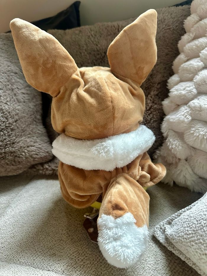 Adorable peluche Pikachu déguisé en Évoli, un modèle trop craquant pour les fans Pokémon 🥰 Détails soignés avec la capuche Évoli et son col blanc tout doux. Parfaite pour une collection, une déco ou un cadeau 🎁 Peluche Pokémon. Envoi rapide et soigné 📦