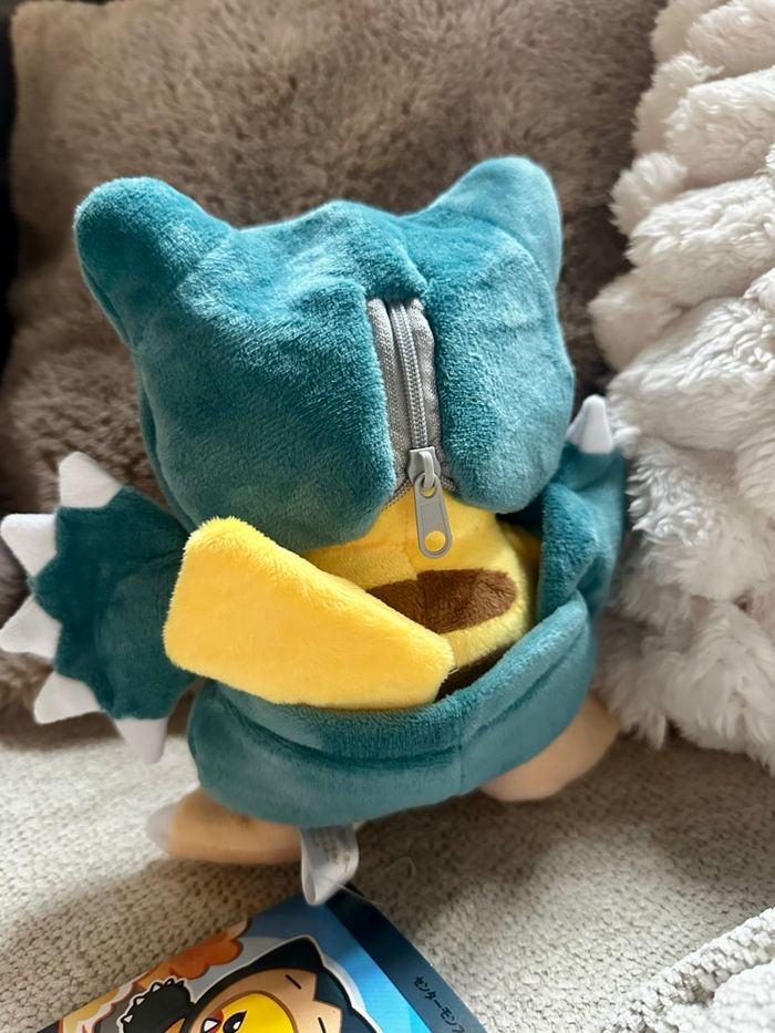 Peluche Pikachu déguisé en Ronflex, modèle original et trop craquant 😍 Capuche Ronflex avec oreilles, bras et pieds détaillés, expression malicieuse de Pikachu. Le costume est ouvrable grâce à une fermeture éclair à l’arrière, ce qui rend la peluche encore plus fun et unique. Peluche Pokémon, idéale pour les collectionneurs, fans de la licence ou comme cadeau 🎁 Étiquette visible sur les photos. Envoi rapide et soigné 📦