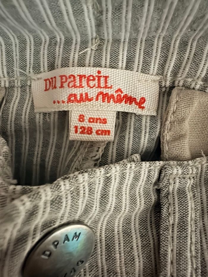 Bermuda / Short long 8 ans – Du Pareil au Même – Rayures blanc/gris – TBE - photo numéro 3
