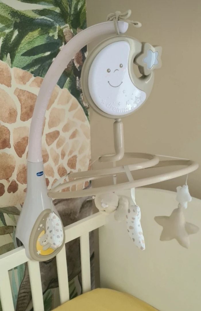 Ciel de lit bébé de marque Chicco en excellent état, quasi neuf. Très pratique, avec veilleuse intégrée pour apaiser bébé et créer une atmosphère douce au moment du coucher. Facile à installer, propre et prêt à l’emploi. N’hésitez pas à me contacter pour plus d’informations, photos supplémentaires.