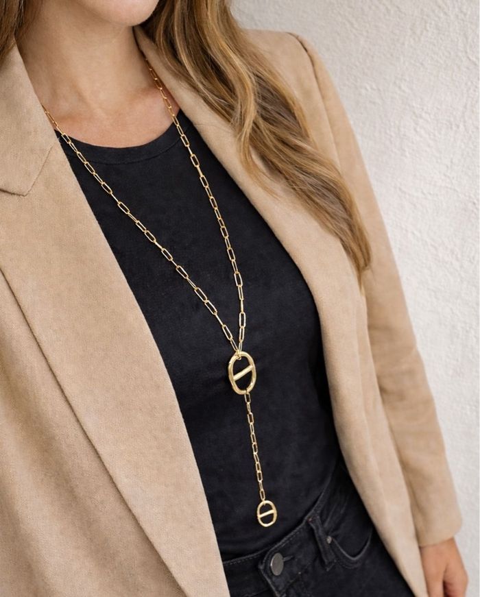 Collier sautoir en Y maille marine en acier inoxydable tendance • Chaîne : 73 cm • Couleur : dorée • Idéal pour vous sublimer au quotidien ✨ #colliersautoir #maillemarine #colliertendance #chic #colliersautoirfemme #colliersautoirdore #acierinoxydable