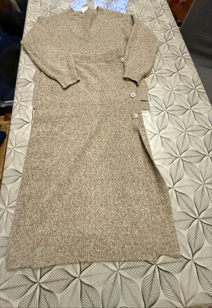 Je vends cet ensemble jupe et pull en maille beige. Description: Ensemble pull oversize et jupe Lefties Pull XS oversize & jupe S Porté 3/4 fois - Couleur : Beige N'hésitez pas à me contacter pour plus d'informations ou de photos.