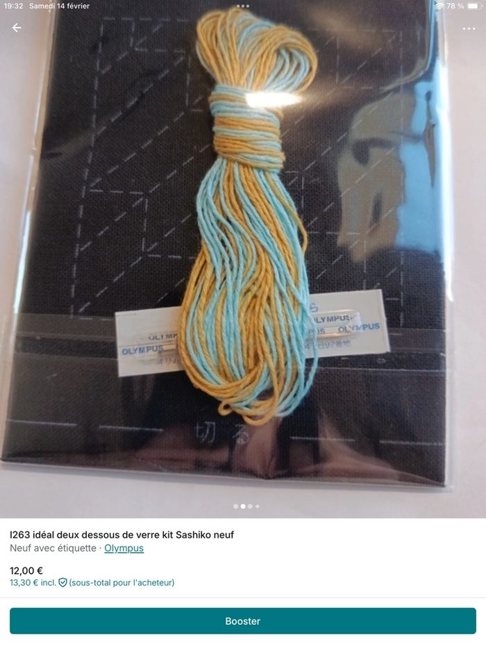 Kit Sashiko broderie japonaise Olympus toile fils aiguille neuf - photo numéro 1