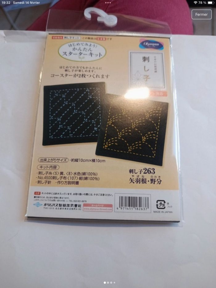 Kit Sashiko broderie japonaise Olympus toile fils aiguille neuf - photo numéro 2