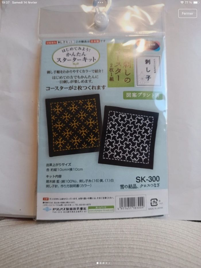 Kit Sashiko neuf fils aiguille toile Olympus Japon  - photo numéro 2