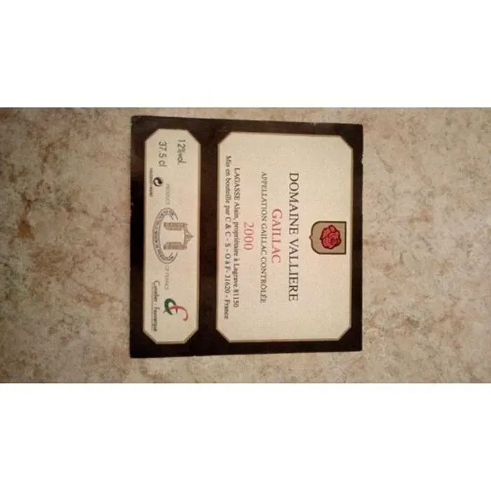 etiquette de vin domaine valliere gaillac 2000 neuf -