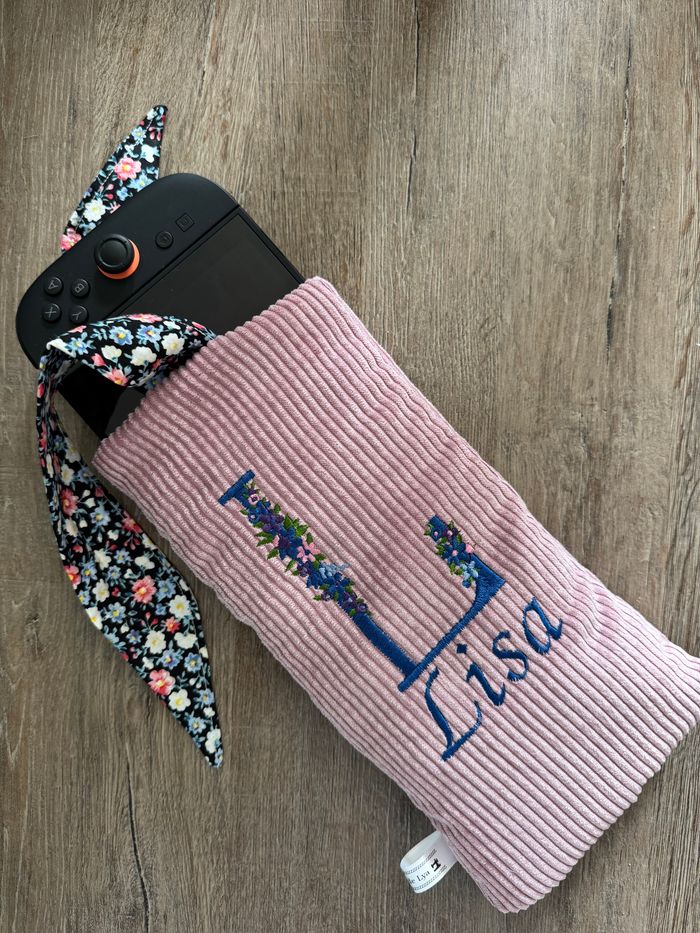 Pochette pour switch 2 Protégez vos switch avec style. Cette pochette est conçue pour accompagner vos moments de jeu au quotidien. Elle protège efficacement votre appareil des chocs, rayures et coins abîmés, tout en restant légère. Sa personnalisation rend cette création unique 🧵 Caractéristiques Tissu résistant et doux Fermeture pratique avec nœud Idéale pour le transport et les voyages 💛 Pourquoi vous allez l’adorer Protège vos switch durablement Pratique et élégante Personnalisable Broderie en supplément