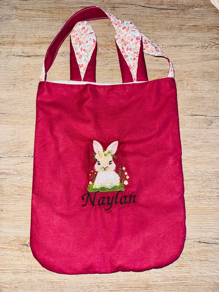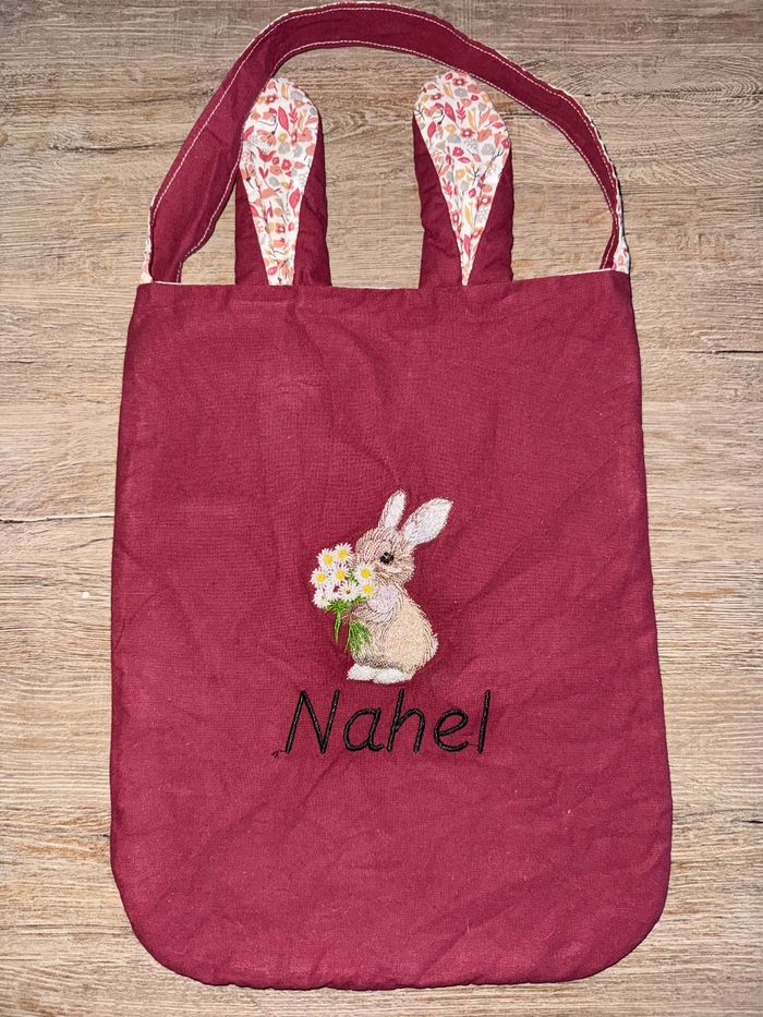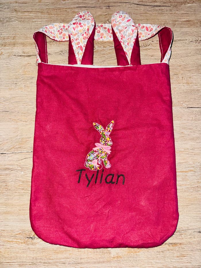 Sac pour Pâques entièrement cousu main. D'autres coloris sont disponibles. La broderie apporte une touche unique et décorative pour le sac de votre enfant.