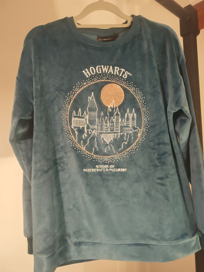 e vends ce sweat Harry Potter “Hogwarts – School of Witchcraft & Wizardry” de l’univers Wizarding World. Couleur vert/bleu canard effet velours tout doux, avec imprimé doré du château de Poudlard 🌙✨ 🔹 Taille : S 🔹 Matière : 95% polyester, 5% élasthanne 🔹 État : très bon état 🔹 Confortable, doux et chaud 🔹 Coupe sympa, facile à porter au quotidien Parfait pour les fans de Harry Potter ou pour un look cosy à la maison comme en sortie. Envoi rapide et soigné 📦 N’hésite pas à m’écrire si tu veux des mesures ! #harrypotter #hogwarts #wizardingworld #poudlard