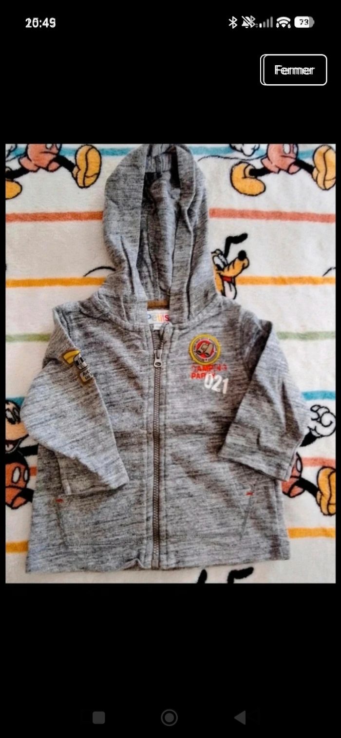 Gilet bebe 6 mois Capuche, fermeture éclair, très bon état