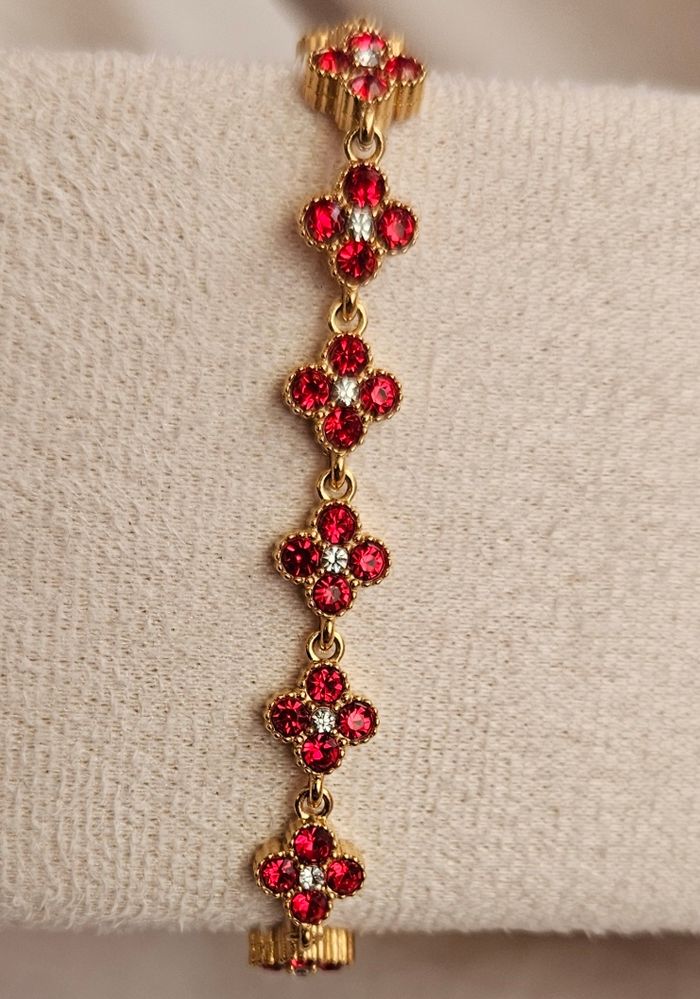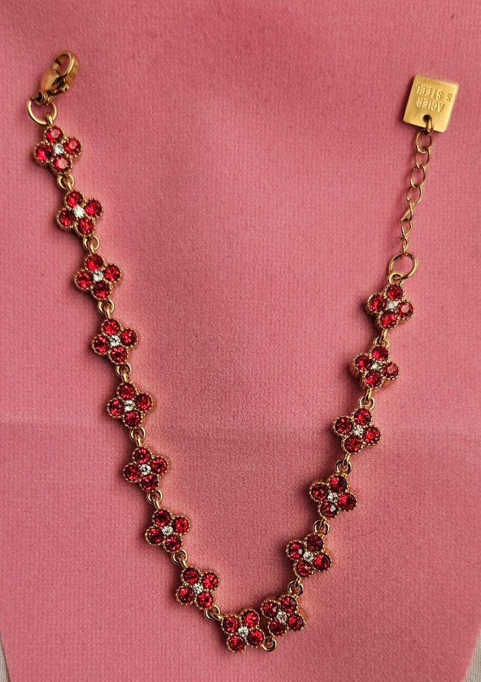 Bracelet Princesse doré couleur rouge en acier inoxydable 316 de très bonne qualité. Vous pouvez vous doucher,baigner et dormir avec rien ne bouge( j'en possède beaucoup)😊Le bracelet mesure 20cm de l'attache jusqu'au dernier trou pour l'attacher. Ce bracelet est neuf. Prix FERME!