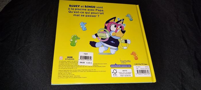 Aujourd'hui, Bluey et Bingo vont à la piscine avec Papa. Mais celui-ci n'a rien préparé... Pas de crème solaire, pas de bouée... Bluey et Bingo risquent de vite s'ennuyer! Vend car reçu en double
