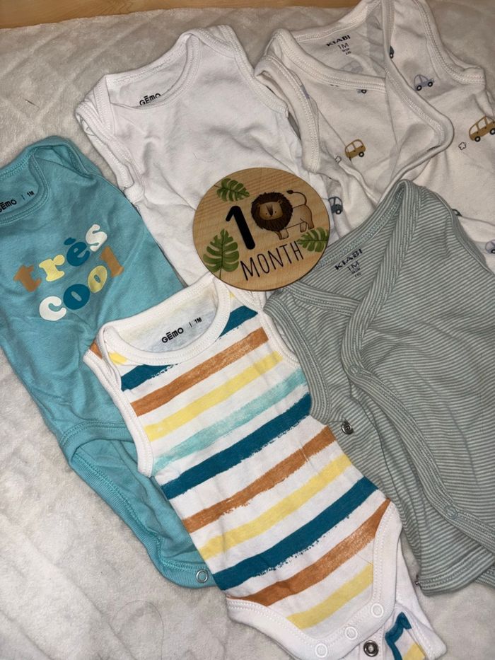 Lot 5 bodies débardeur 2 ouverture devant Très bon état, porté 1 fois Taille 1 mois
