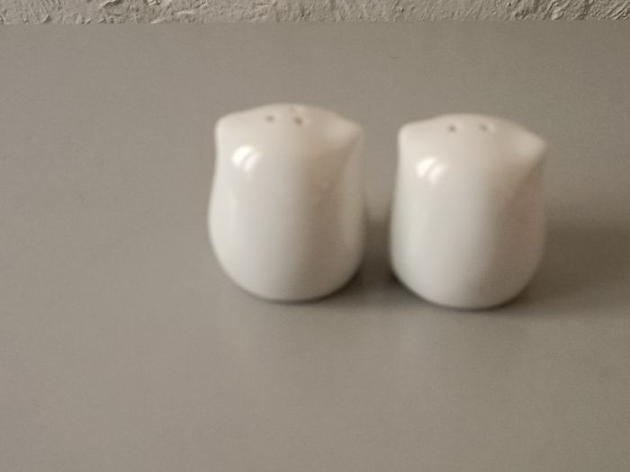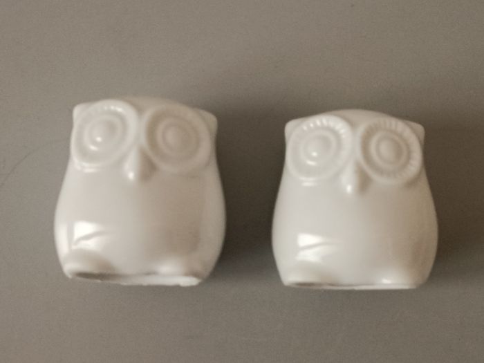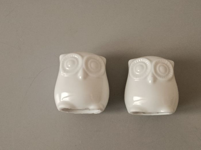 salière et poivrière en porcelaine blanche chouette 4,5 cm bon état f photos