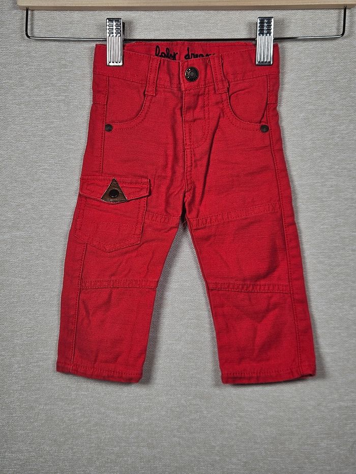 Hello ! 👋 Je te propose cette pièce de la marque Tape à l'œil, une super trouvaille pour le dressing de bébé 👶 Un pantalon rouge dynamique au style cargo avec ses poches travaillées pour un look d'enfer ! ​Informations utiles: ​👕 Article : Pantalon cargo coupe droite ​📏 Taille : 3 mois (59 cm) ​🌈 Couleur : Rouge ​🧵 Matière : 100% coton ​🔍 À savoir : ajustable à la taille ​✨ État : ⭐⭐⭐⭐ ​Les petits + : 🏡 Logement non fumeur et sans animaux. 📦 Envoi rapide et soigné. ​N'hésite pas si tu as la moindre question ou si tu veux d'autres photos ! Je suis là. 😉 ​#rouge #tapealoeil #3mois #coton #bebe #pantalon #cargo #style #tresbonetat #modebebe