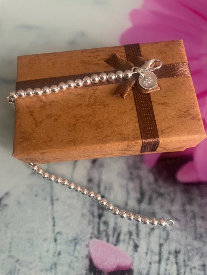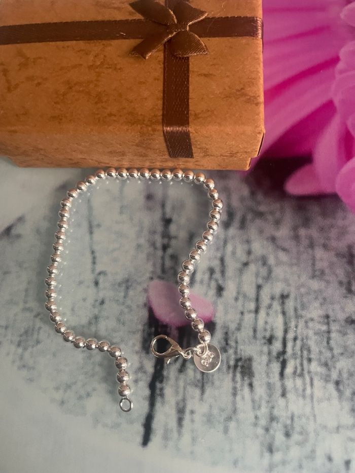 Bracelet boule de perle de 3 mm chacune montées sur fil plaque argent 925 Poinçon attache Longueur 20 cm Magnifique et impeccable Léger solide et brillant