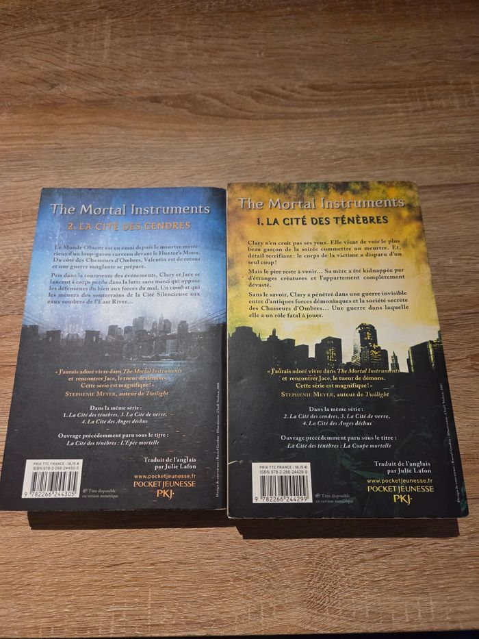 Lot tome 1 et 2 the mortal instrument Tres bon etat Quelques defaut voir photo (page jaunis, bordure un peu abimer) Prix negociable Remise en mains propre possible