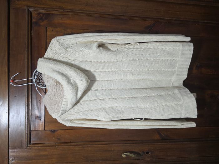 12 euros Description Gilet long à capuche de la marque Stella en coloris beige écru. Taille XL. Coupe confortable et légèrement ample. Maille épaisse avec torsades sur le devant. Intérieur doublé effet polaire très doux et chaud. Capuche avec lien de serrage. Deux poches plaquées à l avant. Idéal pour la mi saison et l hiver. Bon état général.