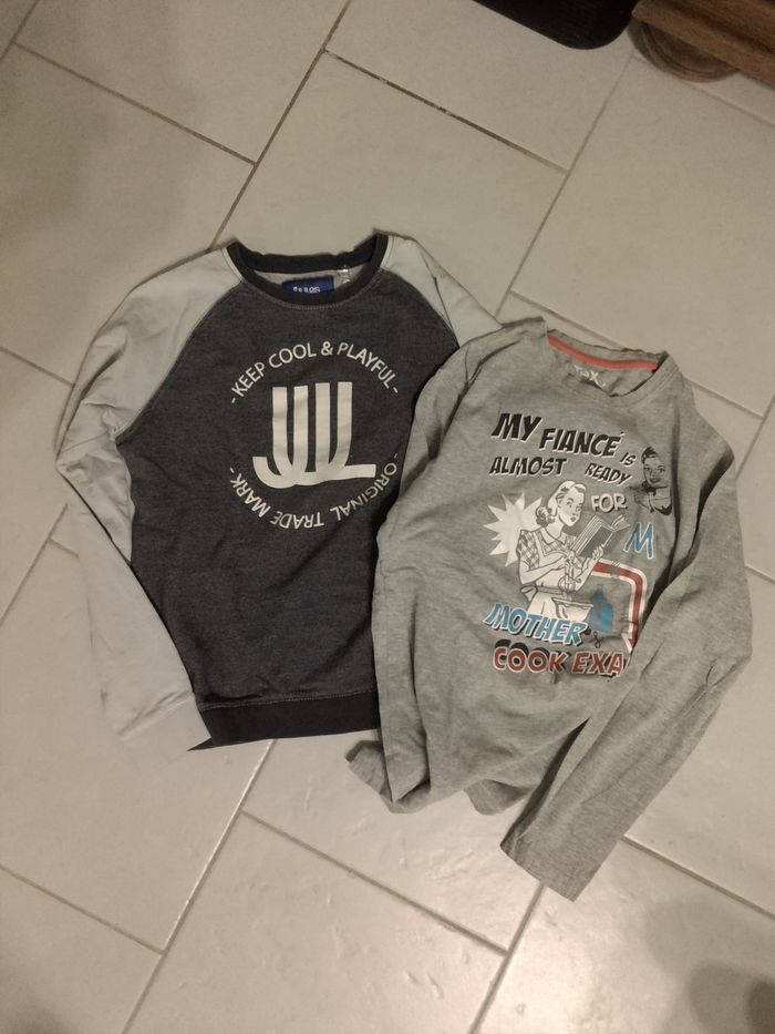 1 sweat bleu gris jules keep cool 1tee shirt longues manches gris tex (ma fiancée is almost ready for my mother cook exam) Taille S