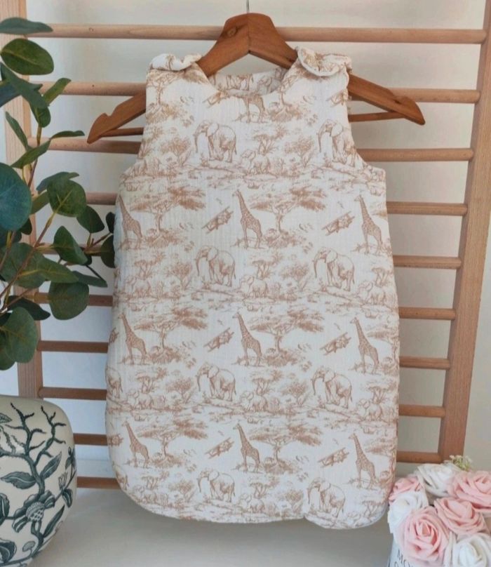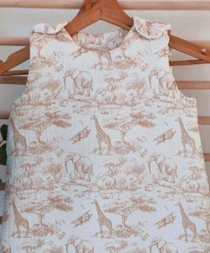 Gigoteuse ɓébé, toute neuve jamais porté, thème toile de jouy style Safari. TOG2. 0/6mois.